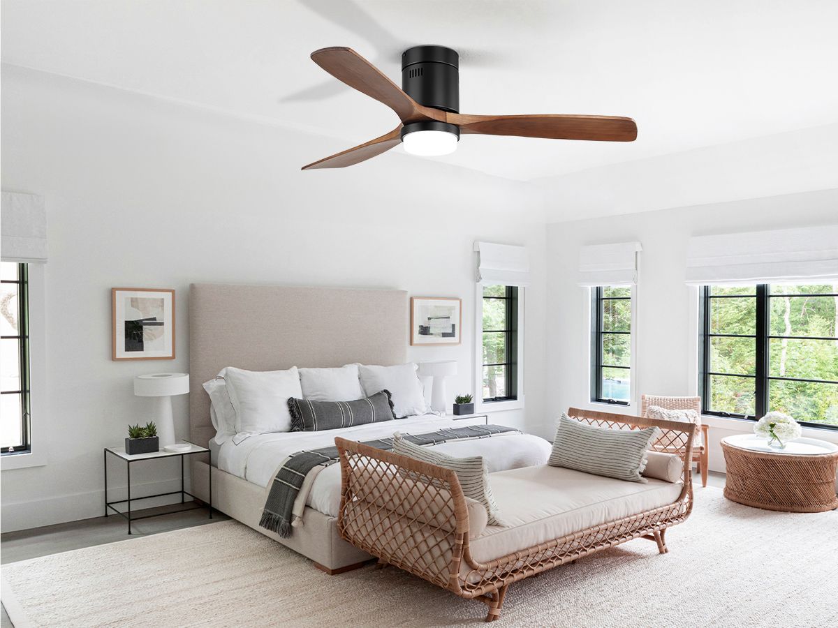 For low ceilings (under 8 ft), choose a flush mount fan like the Sofucor Aura — it keeps your room streamlined and balanced.