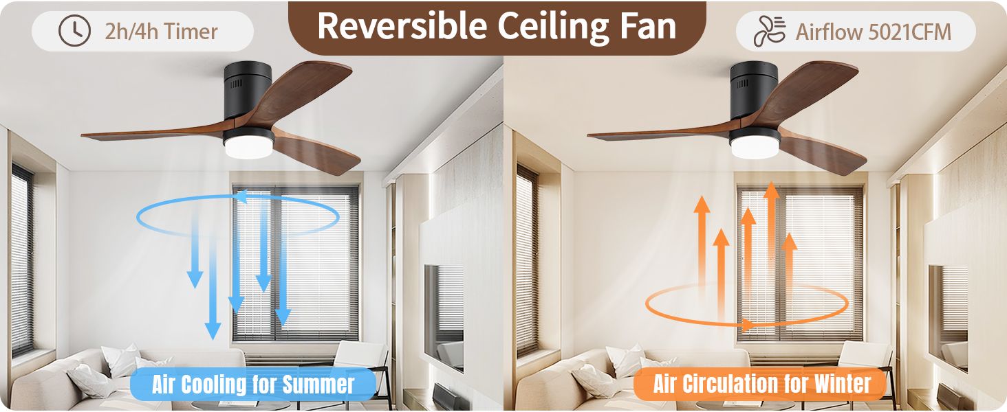 In fall or winter, flipping the reverse mode keeps warm air circulating instead of pooling near the ceiling.