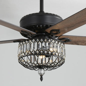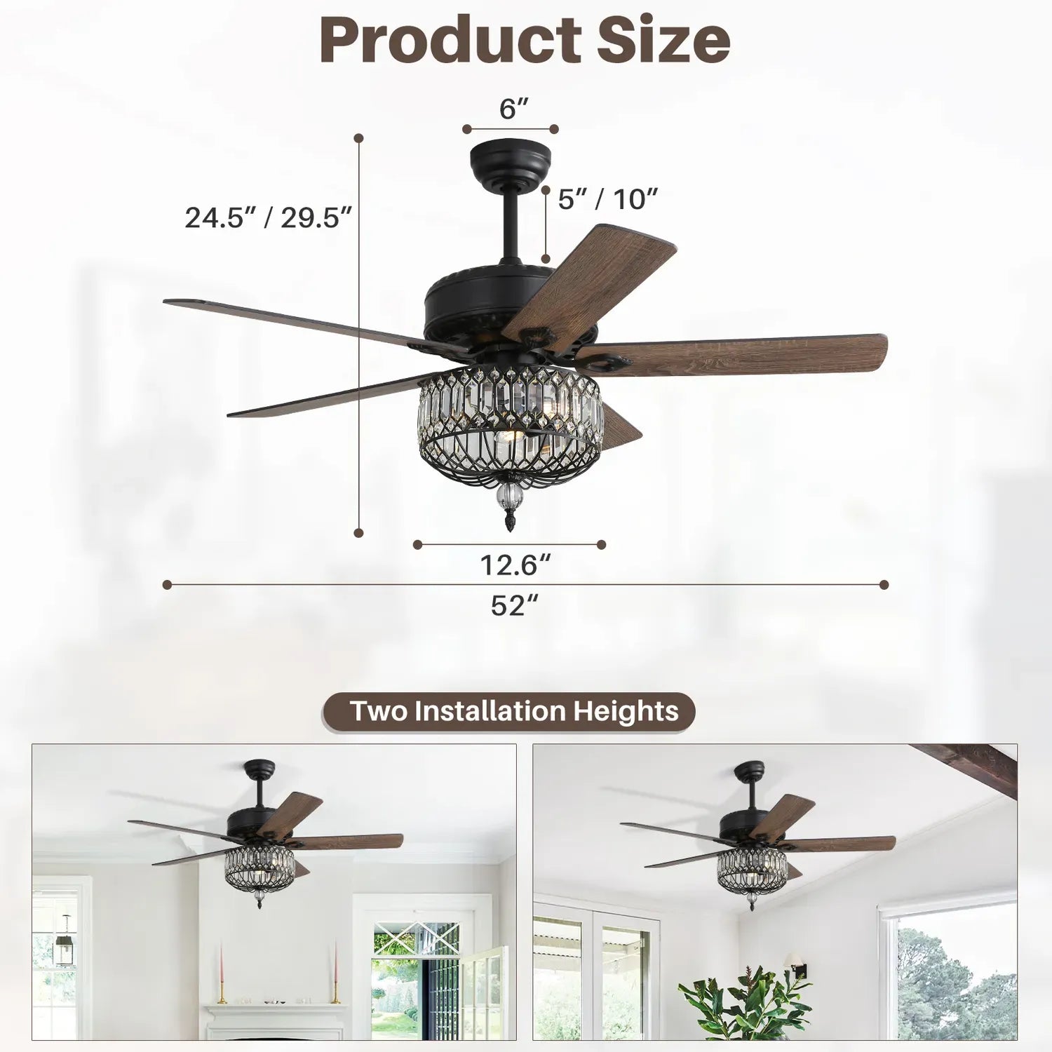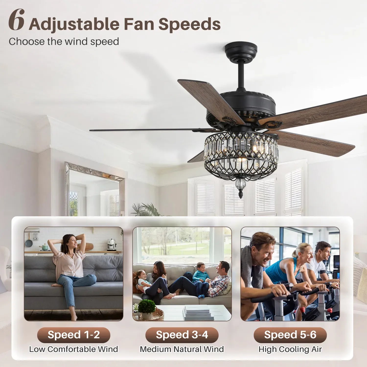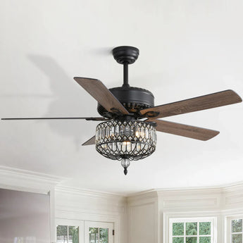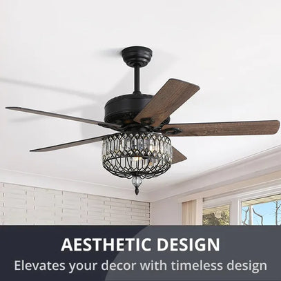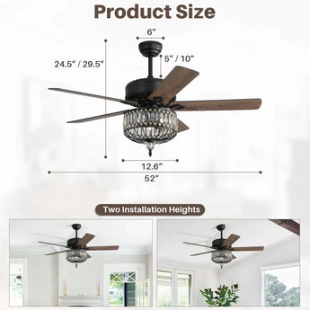 Sofucor 52" Satin Nickel Ceiling Fan with Crystal Light Socket