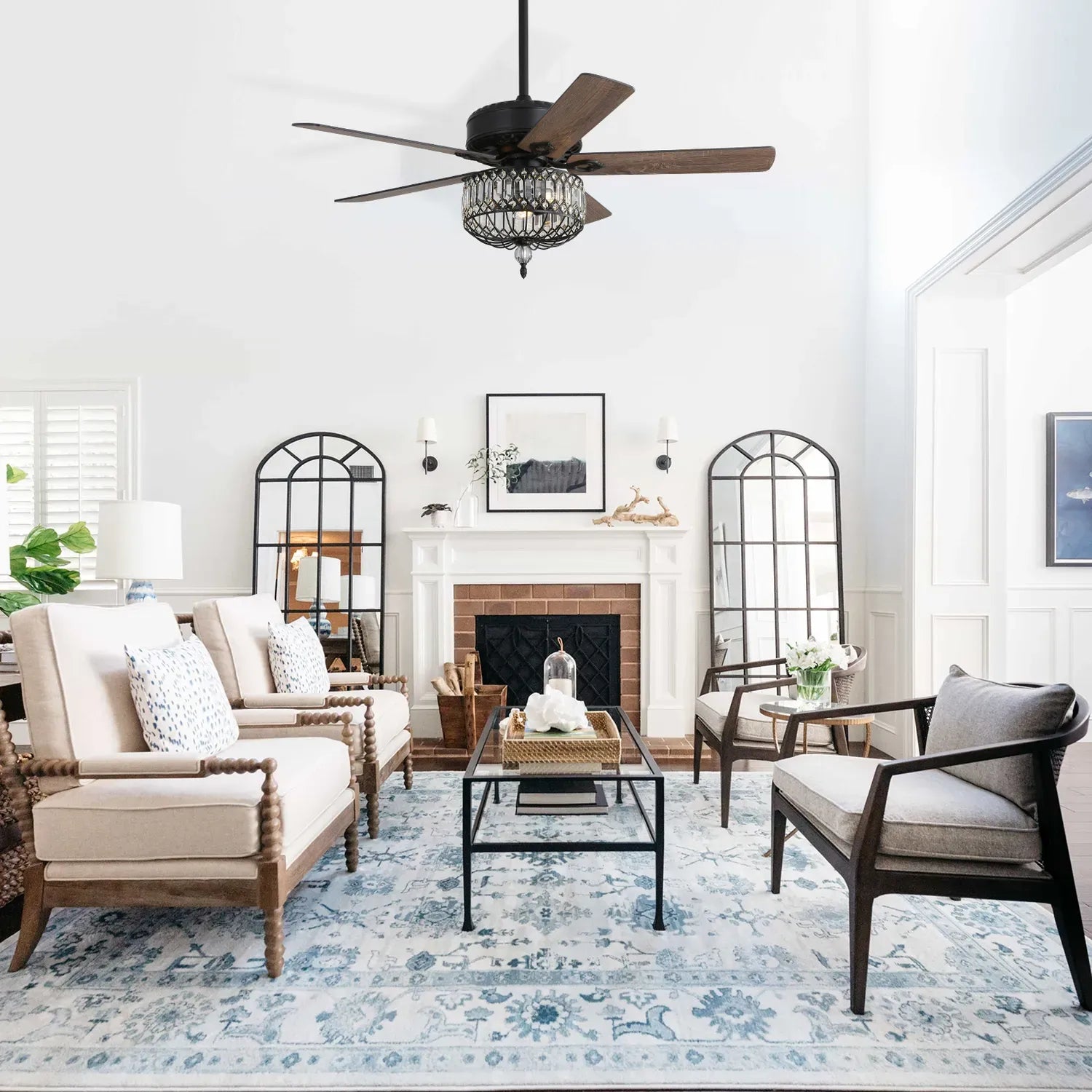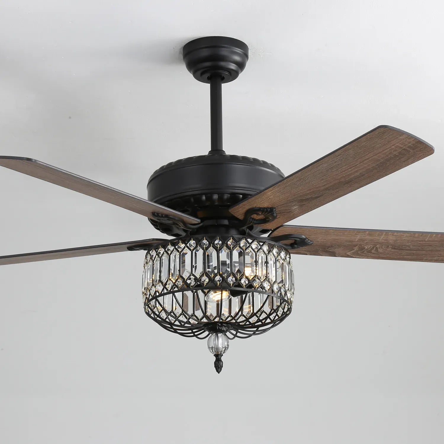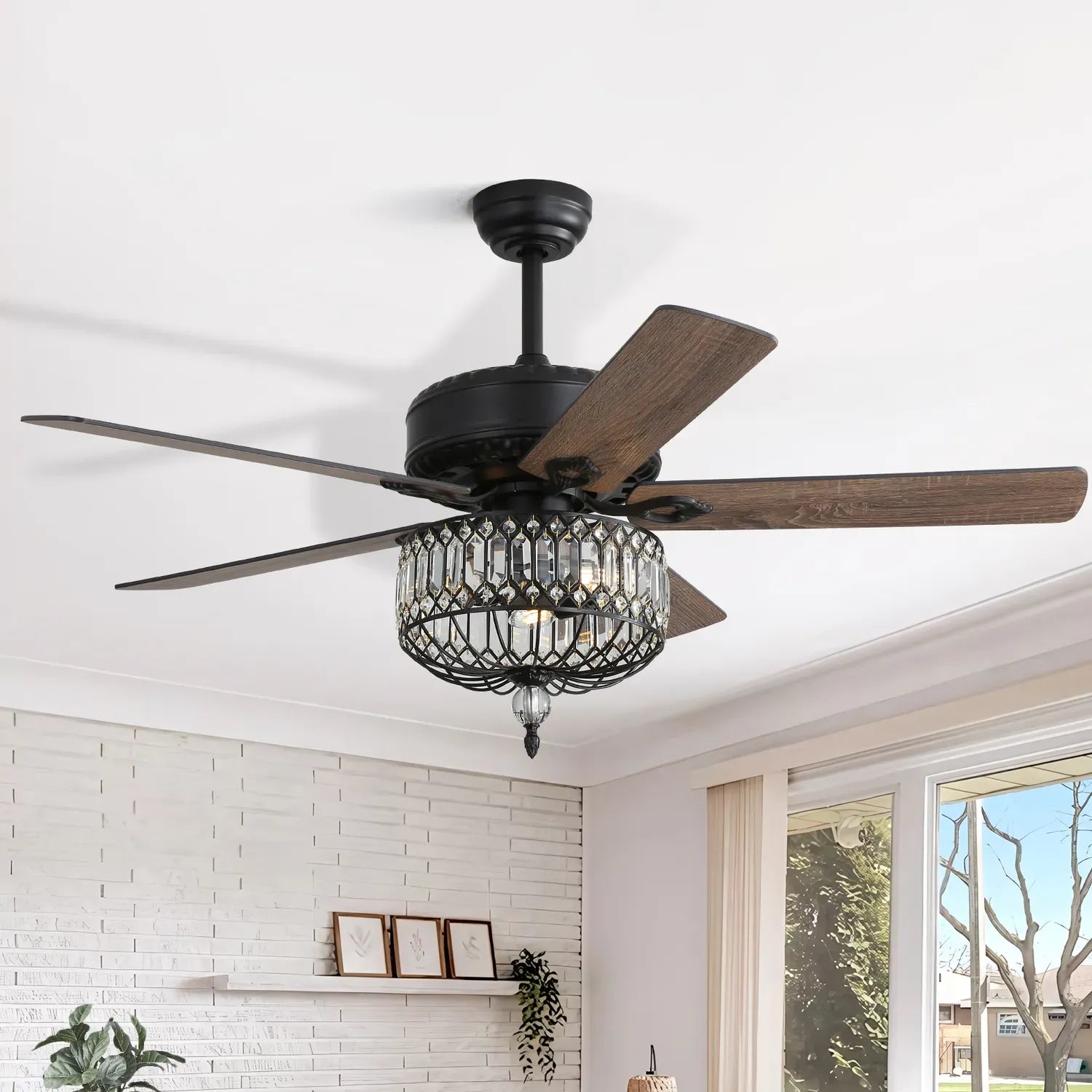 Sofucor 52" Satin Nickel Ceiling Fan with Crystal Light Socket