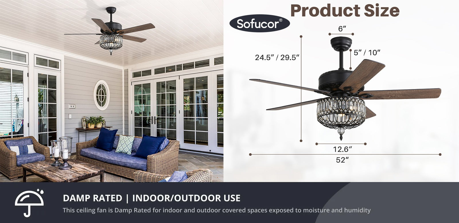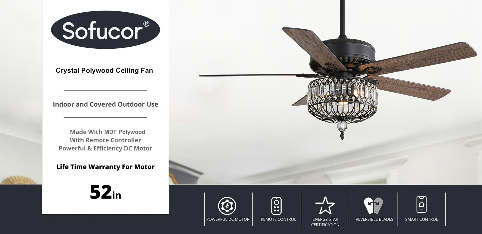Elevate your space with the perfect blend of style, quiet operation, and smart functionality offered by the Sofucor 52-Inch DC Motor Ceiling Fan.