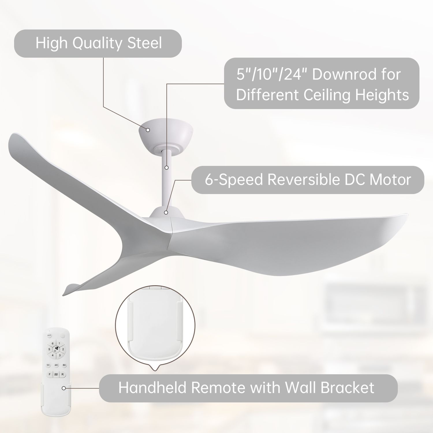 All sofucor fans come with multifunctional remote controller & wall remote holder, simply make your ceiling fan wall control without damage your home.