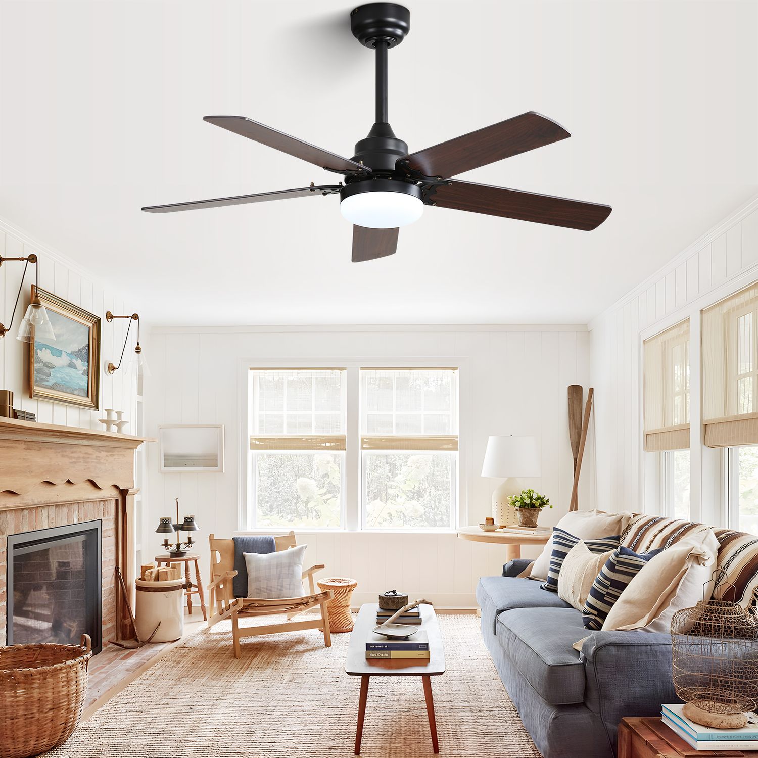 42‘’Walnut Wood Ceiling Fan With Light