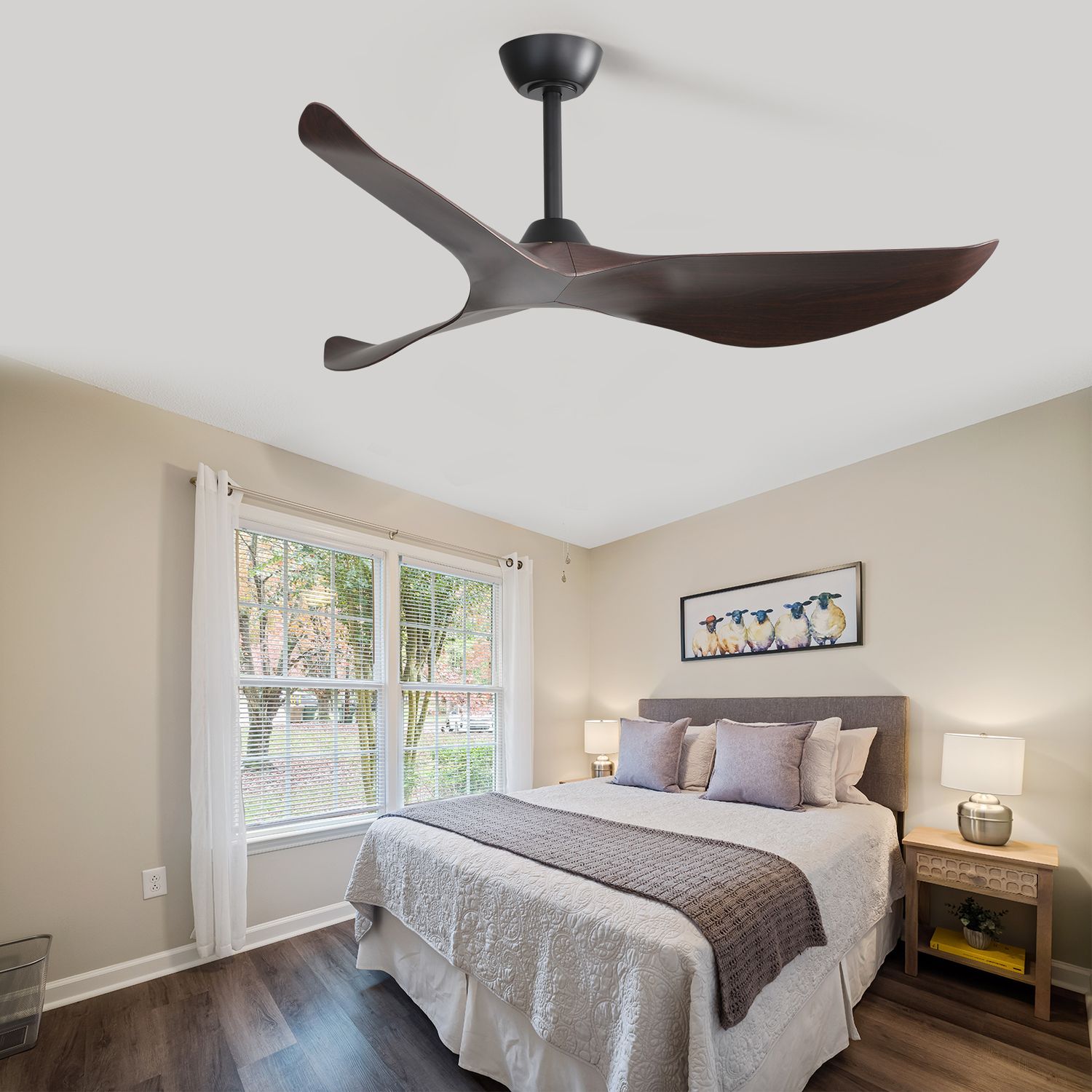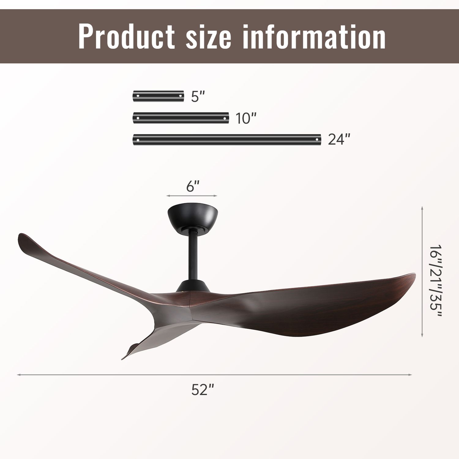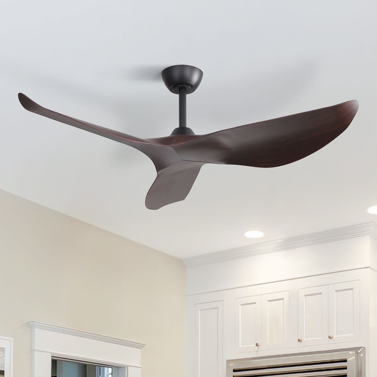 [Final Sale]52″ Curved ABS Blades Ceiling Fan-Black with Walnut Color Blade