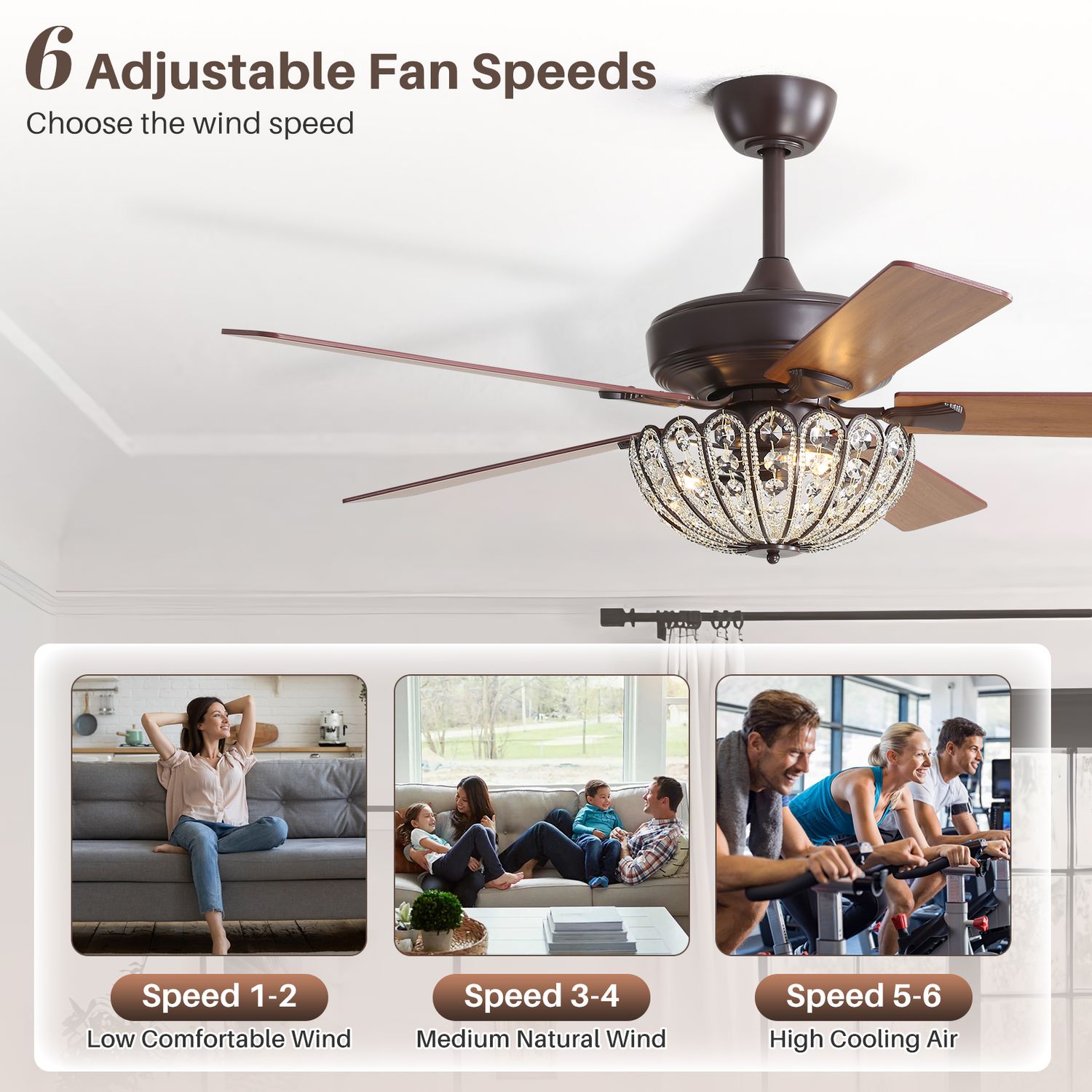 All Sofucor fans are built with 6-speed DC motors, typically more efficient and quiet while working, 75% more efficient than traditional AC motors.