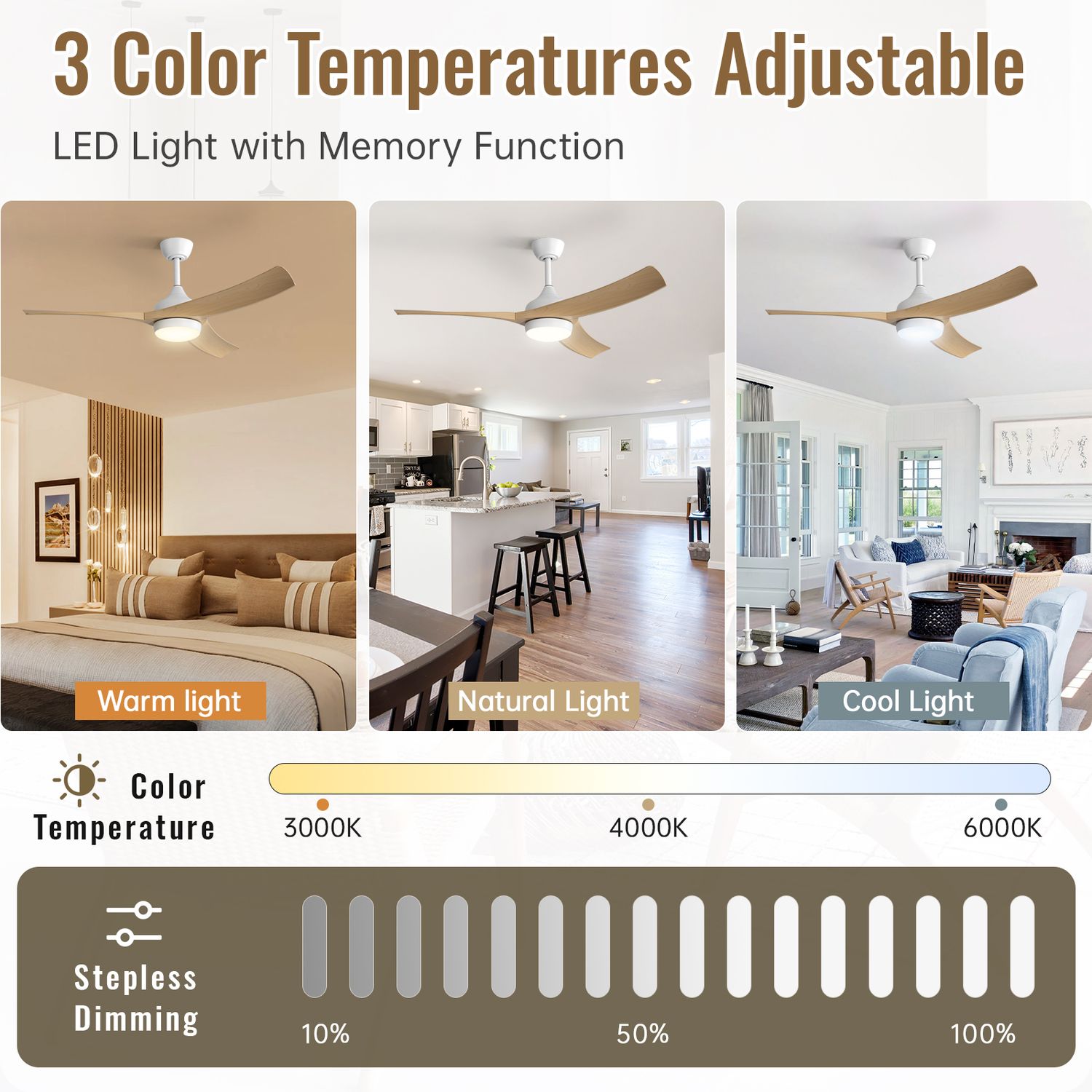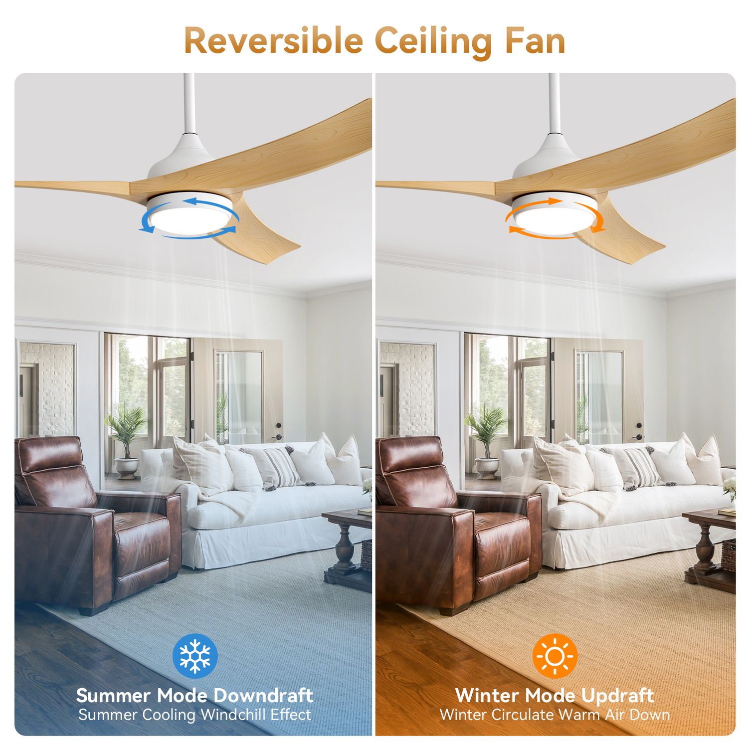 Brighten and cool your home with the Sofucor 52" Smart Ceiling Fan—ABS wood-look blades, dimmable LED light, whisper-quiet DC motor, and app + voice control.