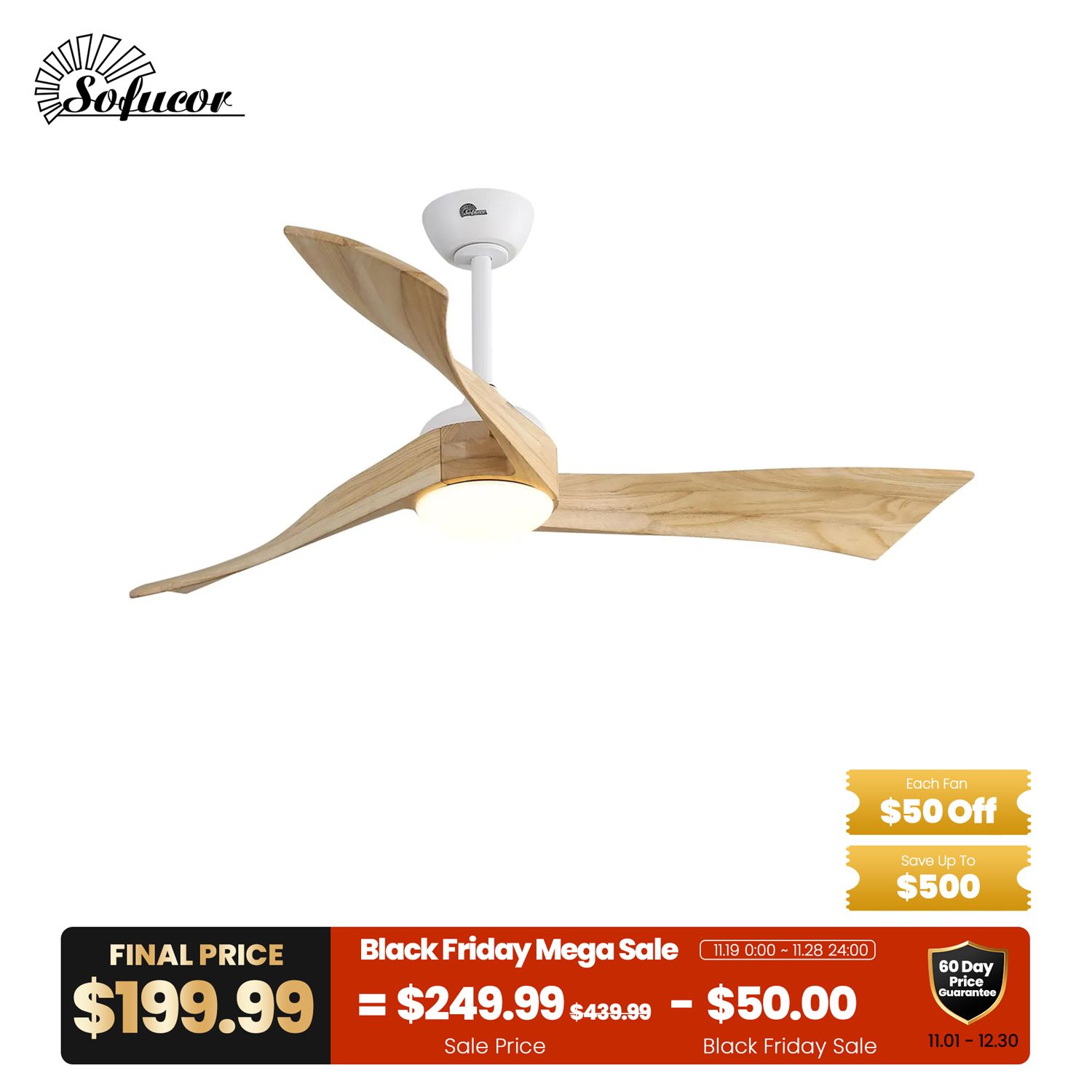 Sofucor 52" Wave Wood Ceiling Fan With Light