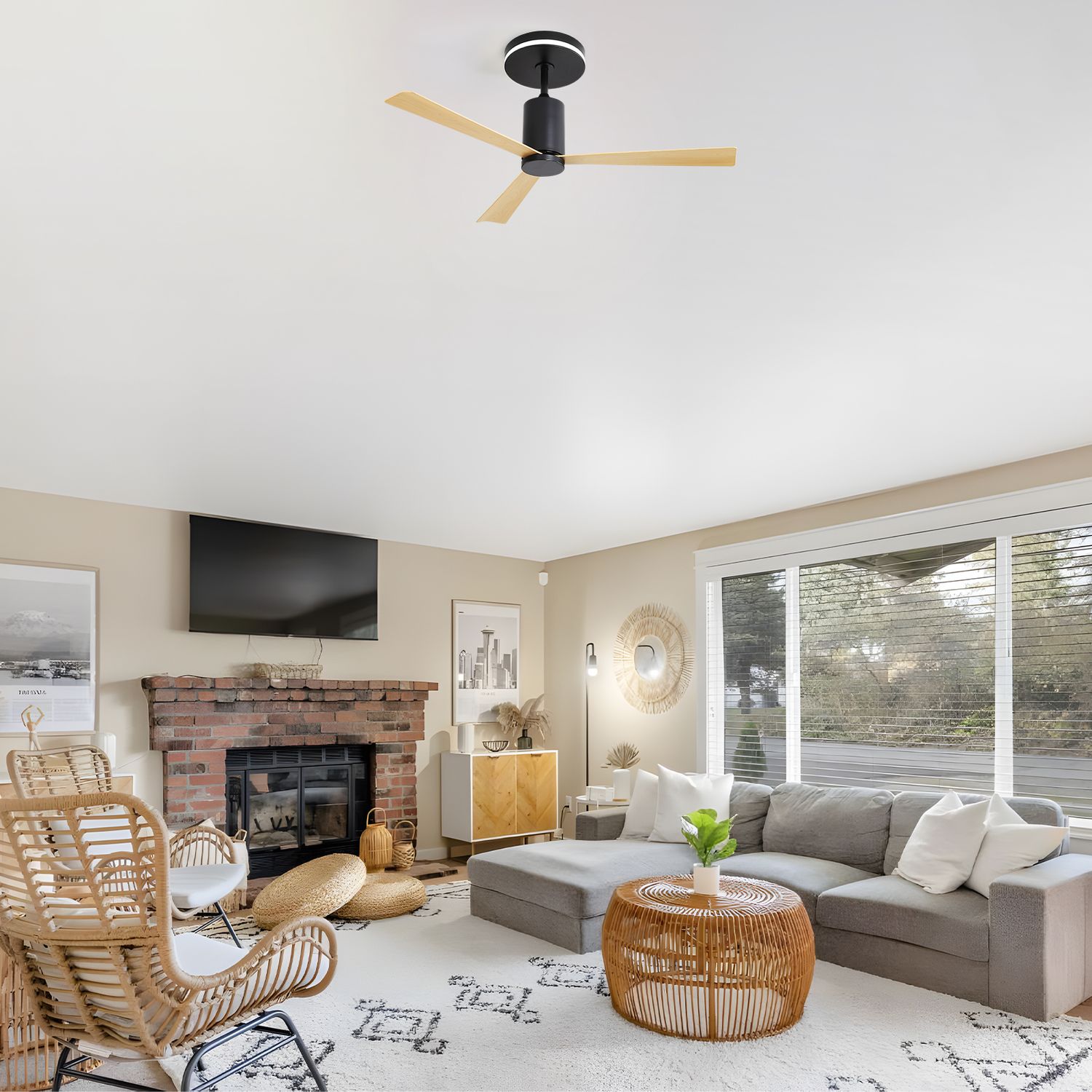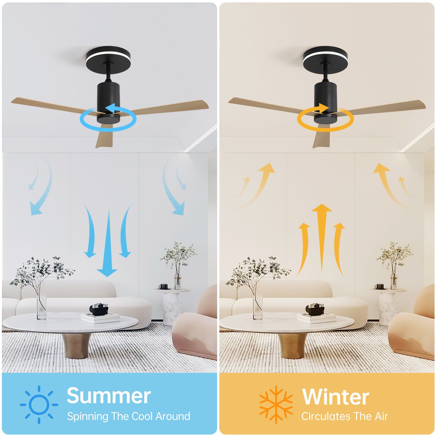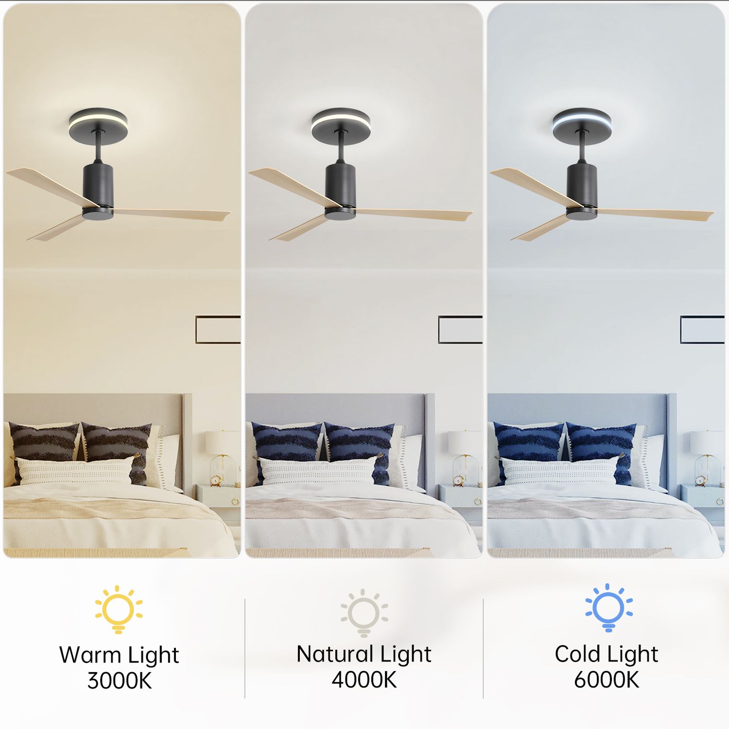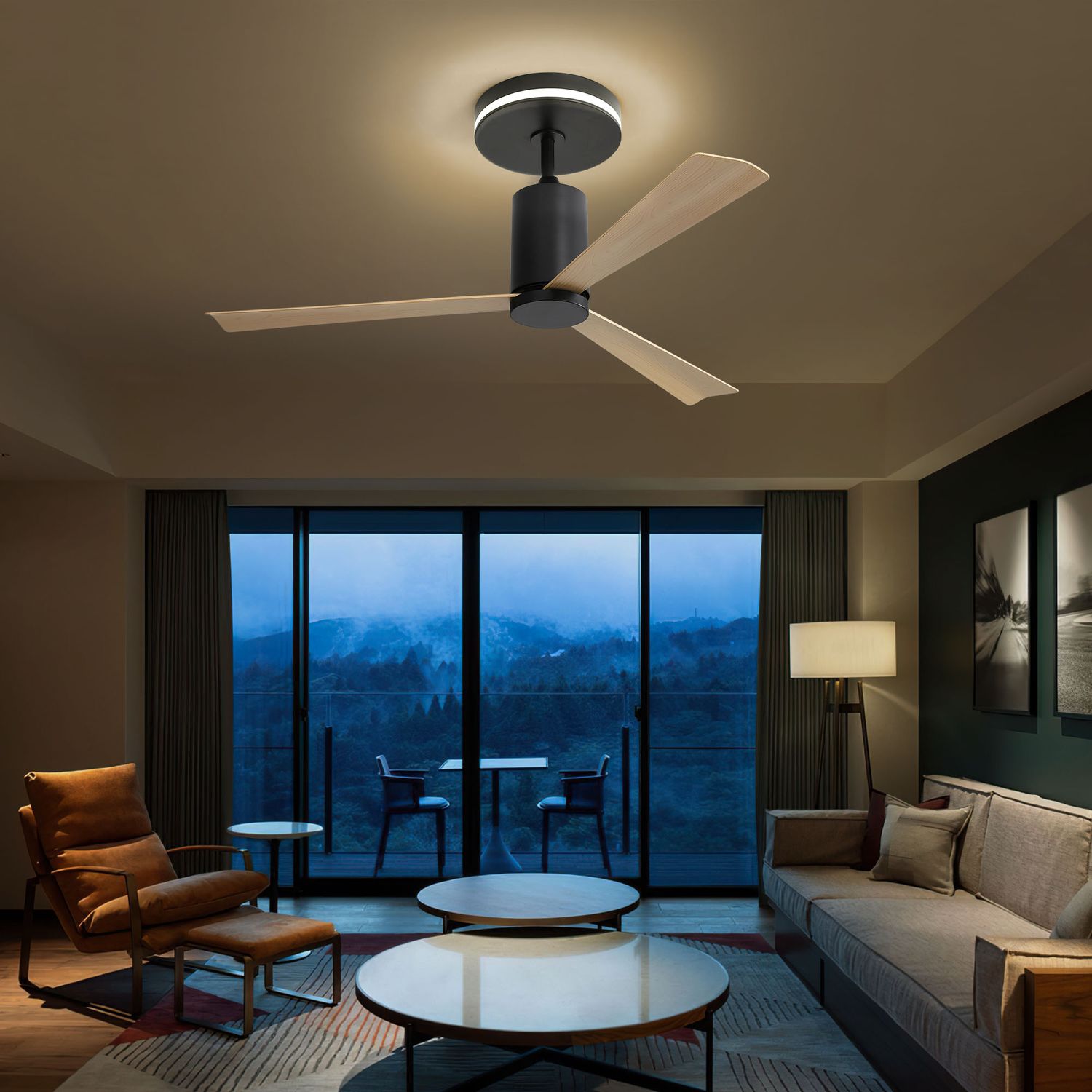 [Final Sale] Sofucor 52" Flush Mount LED Light 3-Blade ABS Wood Grain Ceiling Fan
