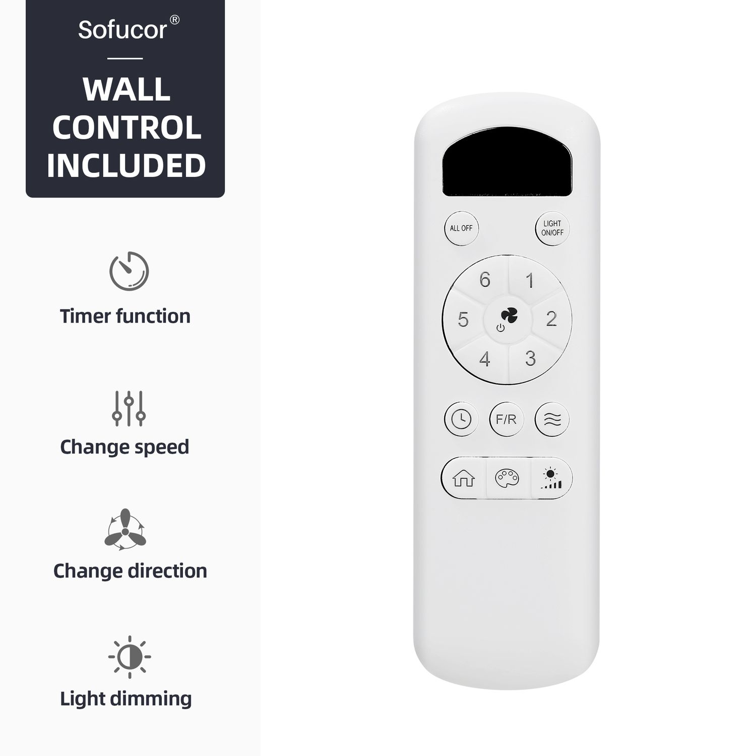 All sofucor fans come with multifunctional remote controller & wall remote holder, simply make your ceiling fan wall control without damage your home.