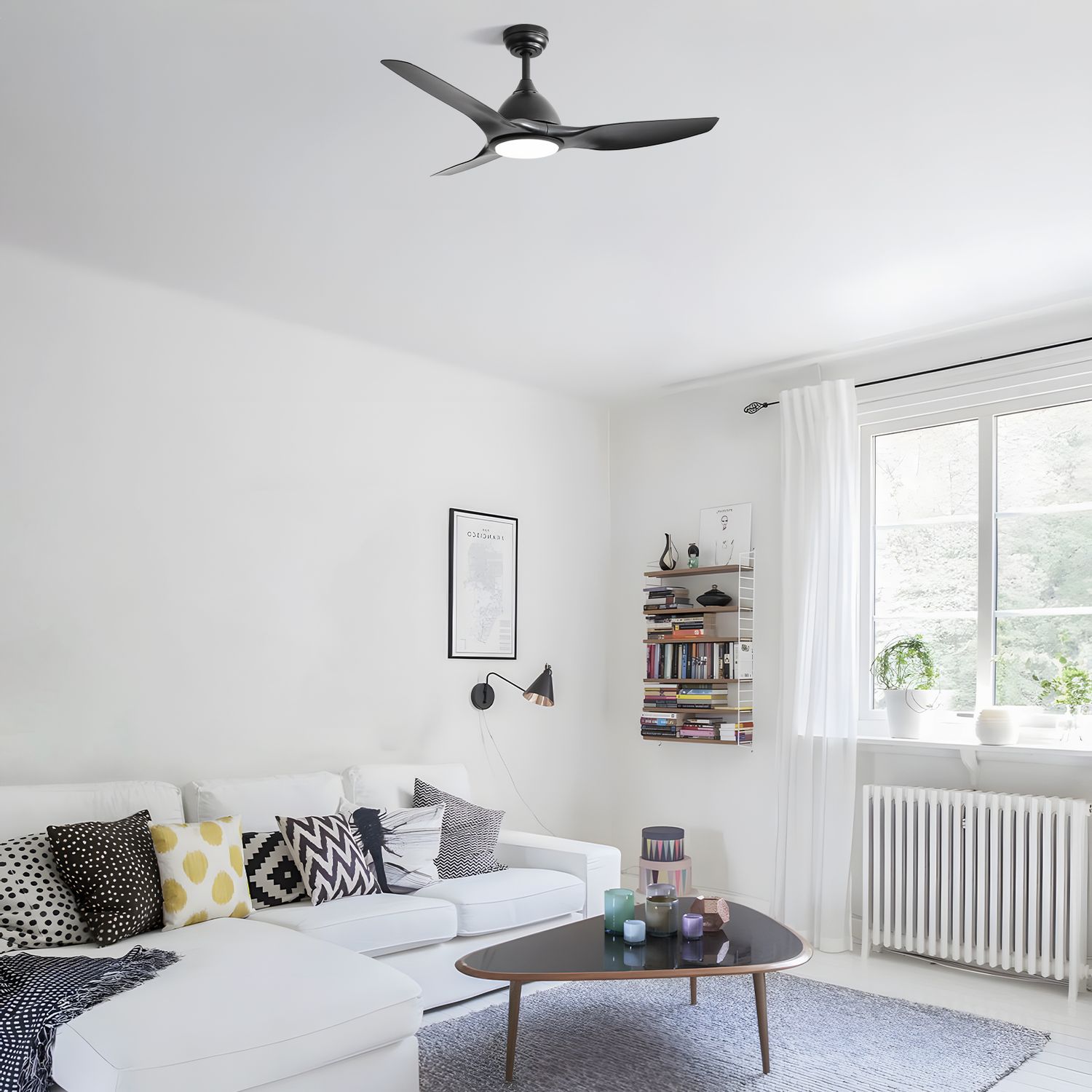 Sofucor 52" Ceiling Fans with Lights and Remote, 6-Speed 3-Color 3-Timer Ceilings Fan with Lights, Noiseless Reversible DC Motor for Bedroom Living Room (White/black, 52 in)