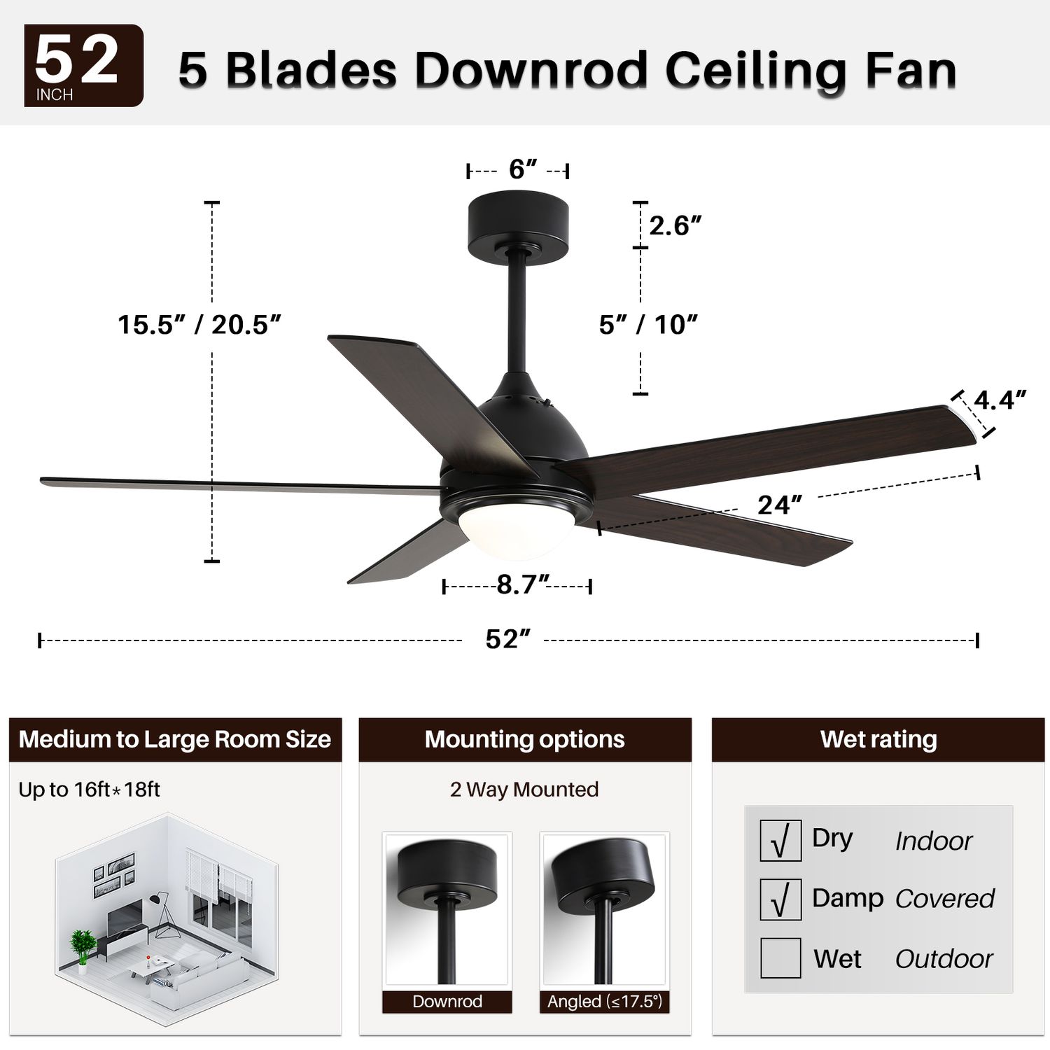 Elevate your indoor spaces with this versatile ceiling fan, featuring a 52-inch size suitable for medium to large rooms up to 400 sq. ft., such as bedrooms, dens, and dining rooms. The bold and beautiful design seamlessly complements various room styles.