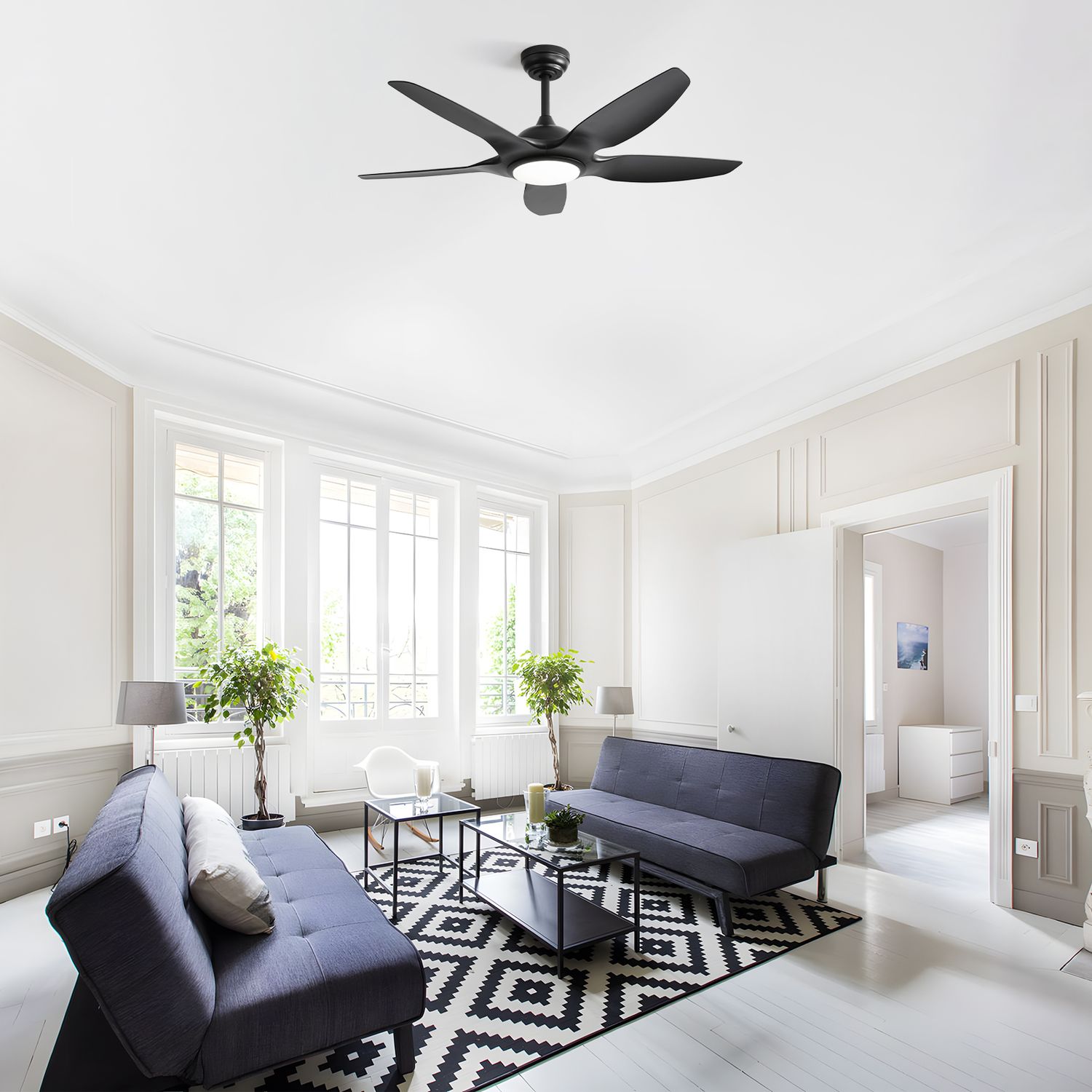 With Light and Remote Control, 6-Speed, 3-Timer with Quiet Energy Saving, 5 blades Ceiling fan with Remote, ABS (White/ Black, 48 in)