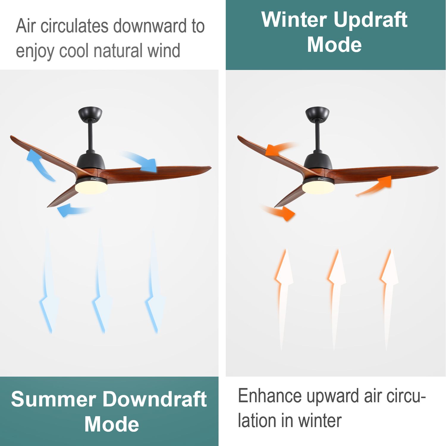 56″ Wood Ceiling Fan With Light Remote