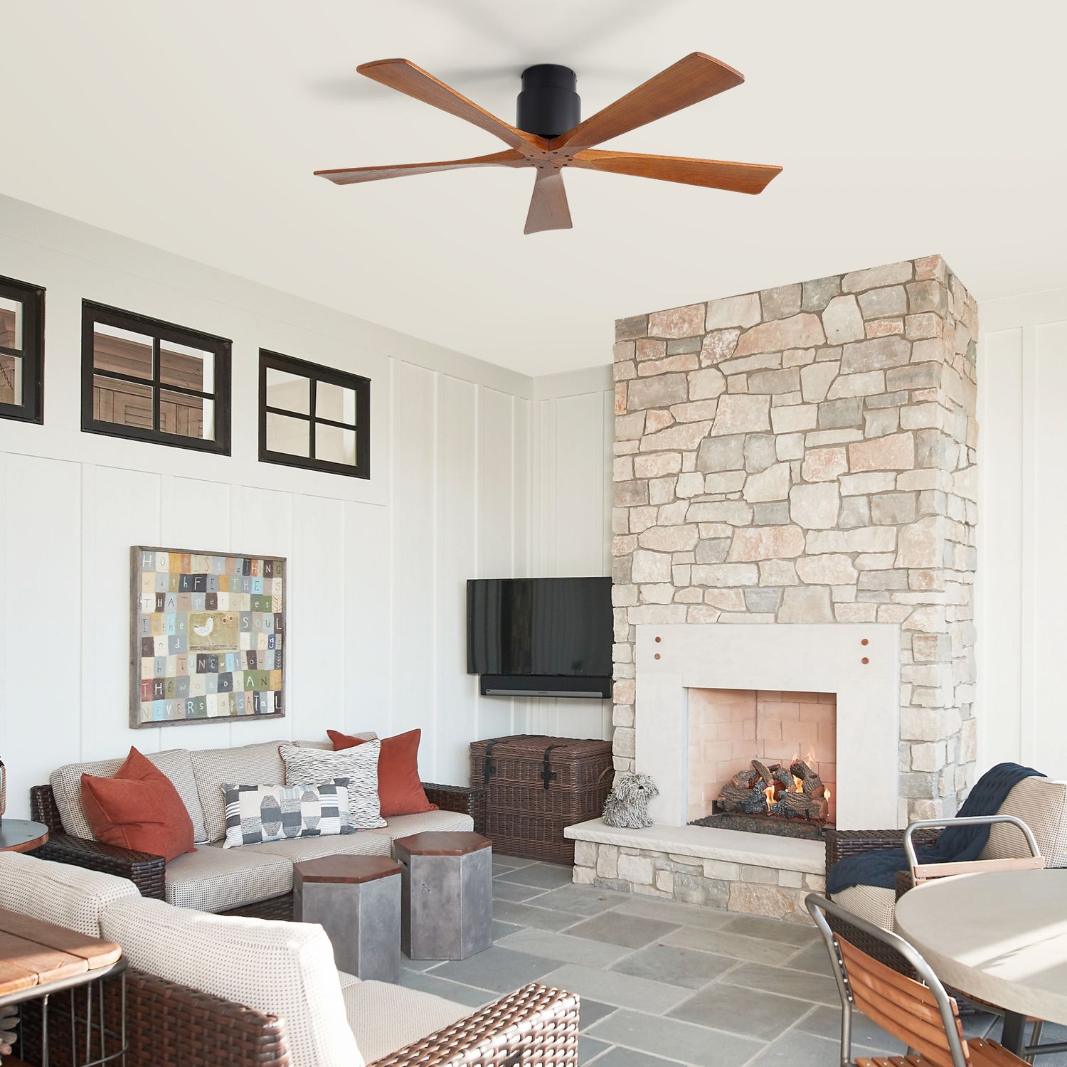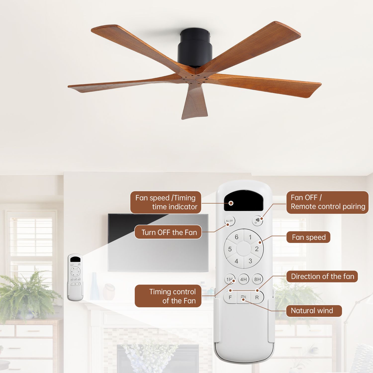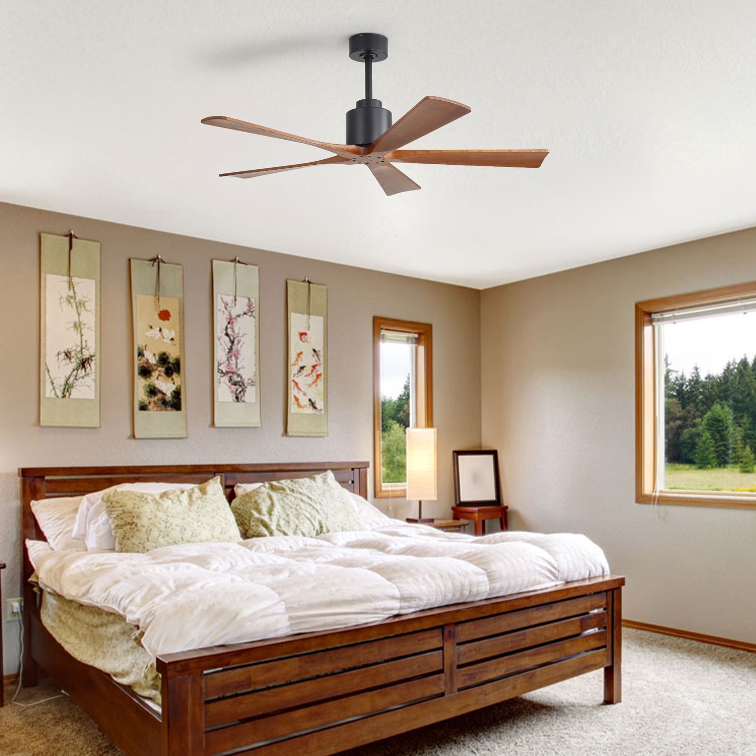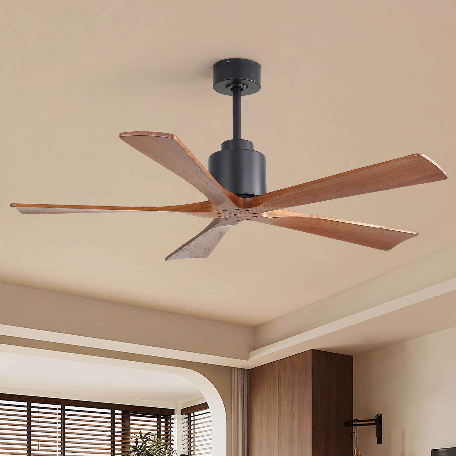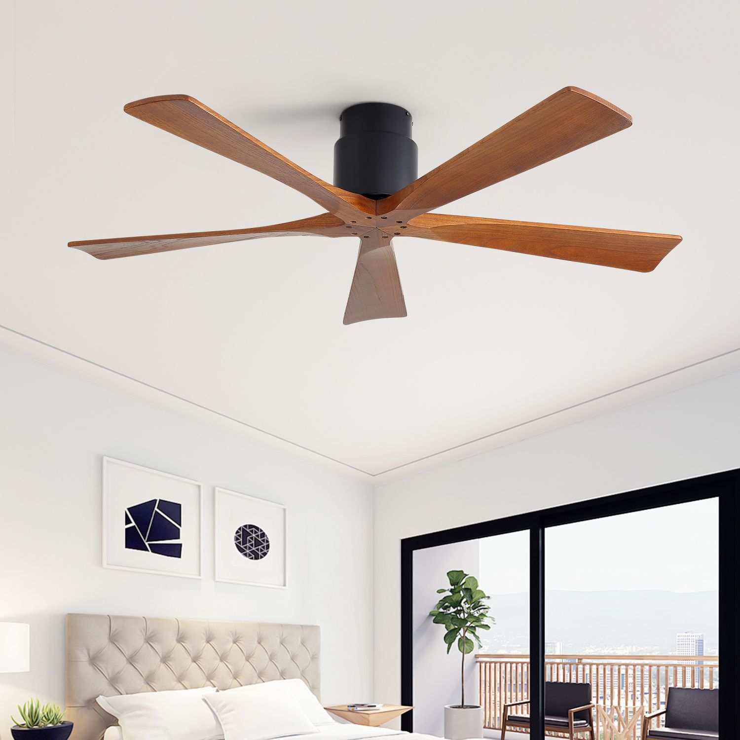 Sofucor New 52" Modern Farmhouse Dual-Mount Five-Blade Wood Ceiling Fan
