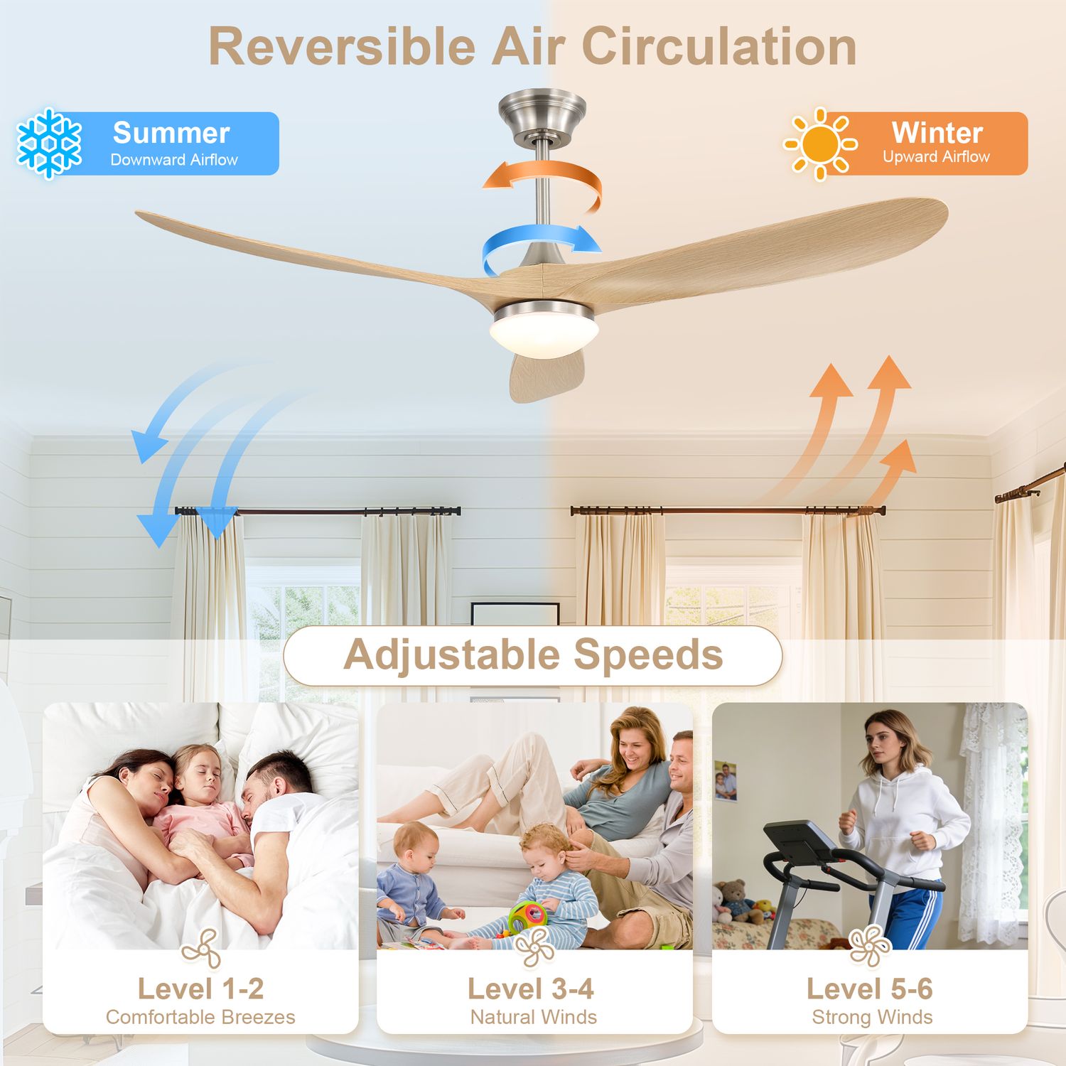 Elevate your space with the perfect blend of style, quiet operation, and smart functionality offered by the Sofucor 60-Inch DC Motor Ceiling Fan.
