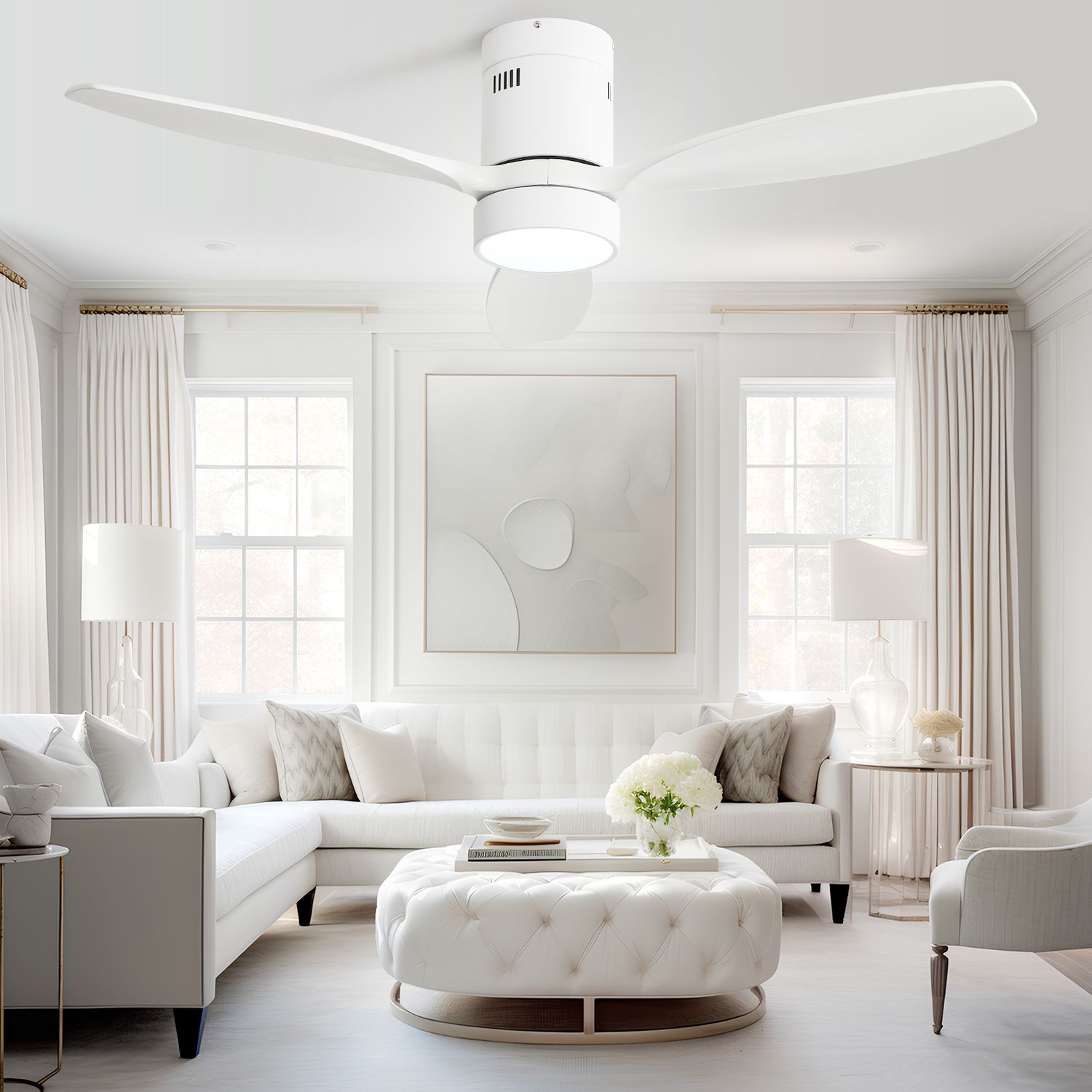 Keep cool and stylish with the Sofucor 52" Low Profile Ceiling Fan—real wood blades, dimmable LED, quiet DC motor, reversible airflow, and easy app or voice control.
