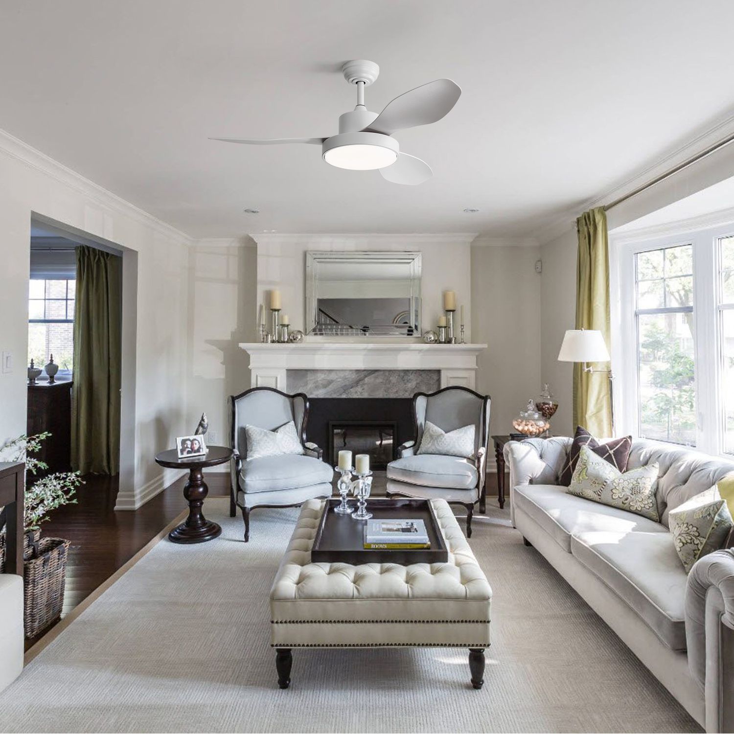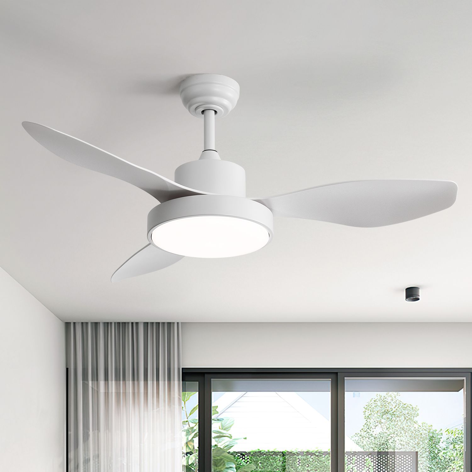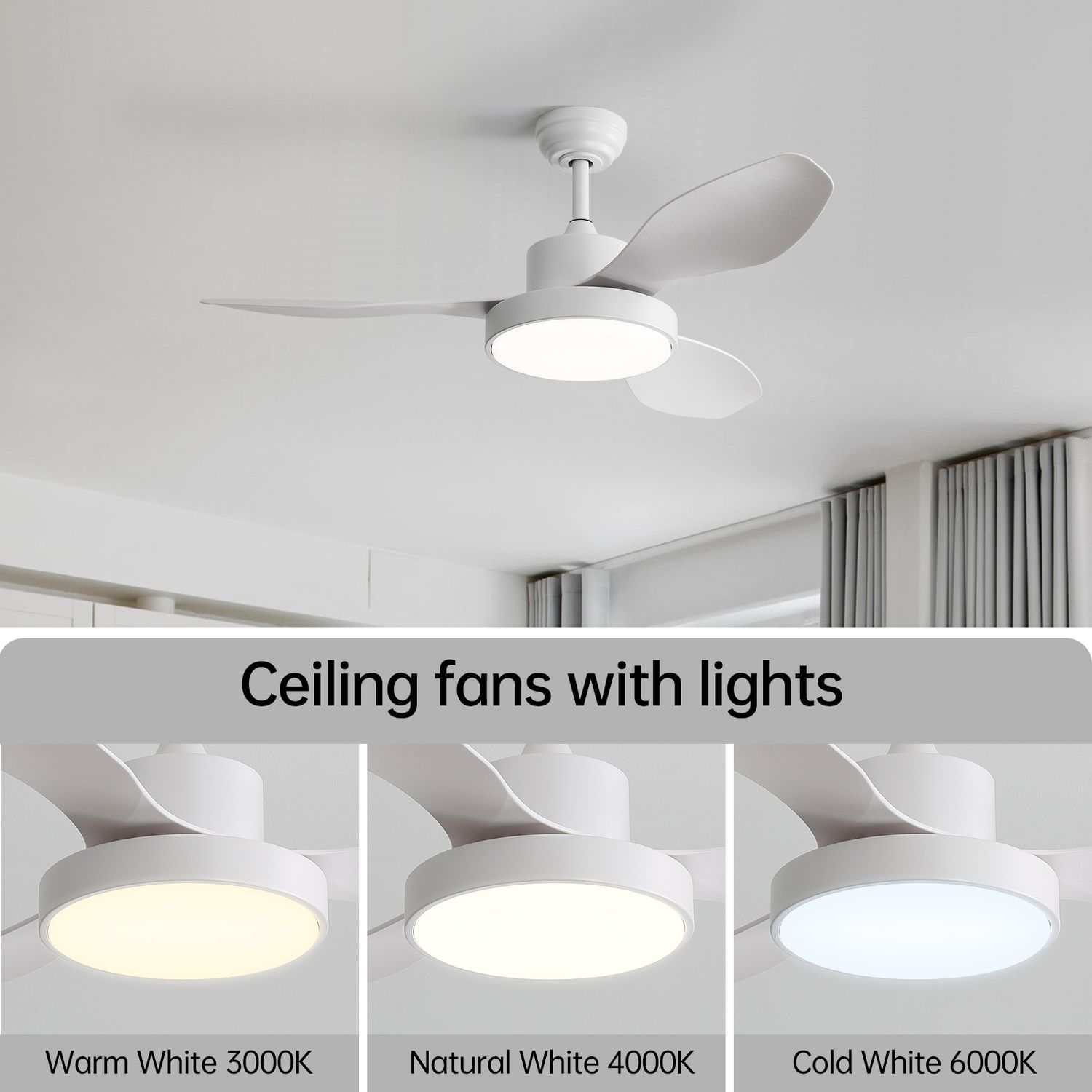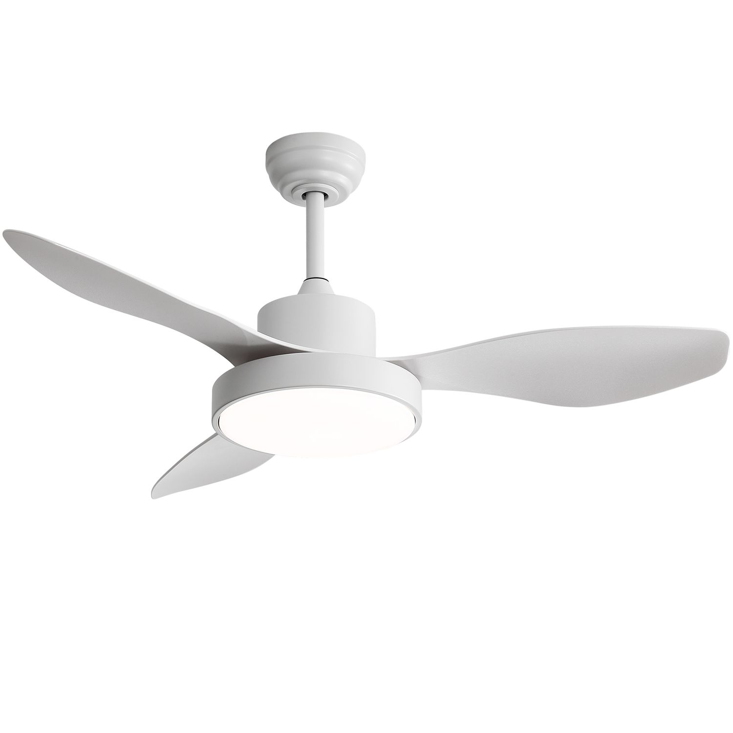 Modern 47-Inch White Ceiling Fan with Light and Remote, 3 ABS Blades, DC Motor, Dimmable 3-Color LED, Reversible, Quiet for Indoor Use – 100-240V