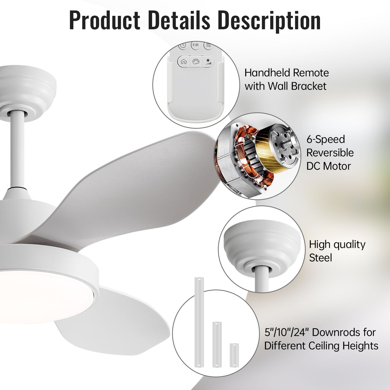 All sofucor fans come with multifunctional remote controller & wall remote holder, simply make your ceiling fan wall control without damage your home.