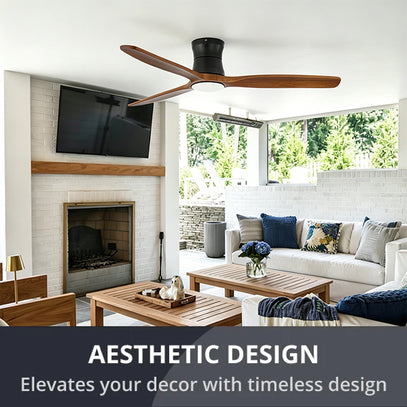 - Modern Low Profile Design - 52" low profile ceiling fan with sleek matte black motor and 3 solid walnut wood blades, perfect for low ceilings, living rooms, bedrooms, and patios.