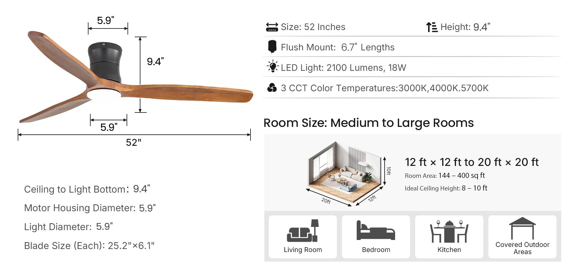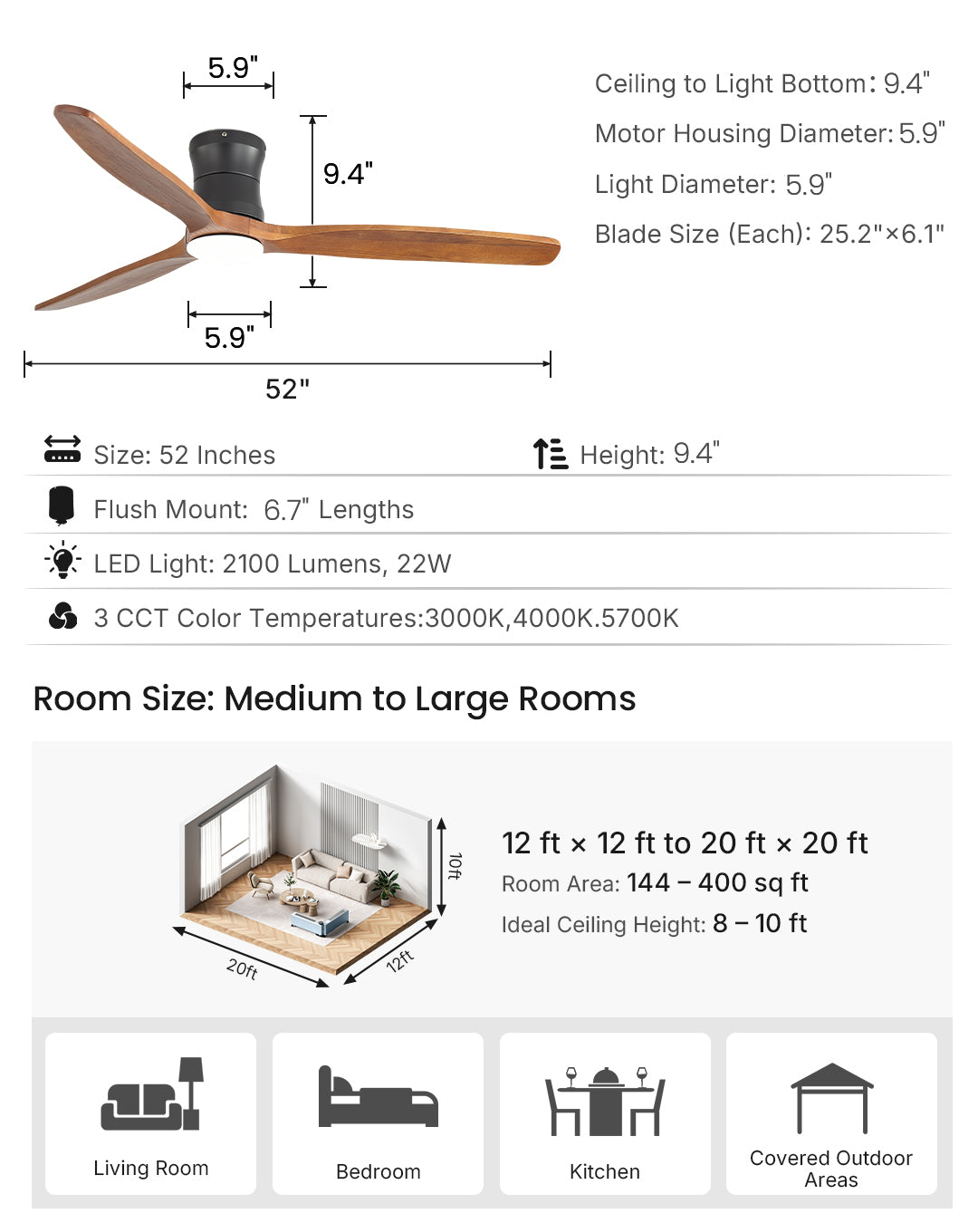 | Room Size (Recommended): | 12'×12' – 20'×20' (up to 20'×20') |